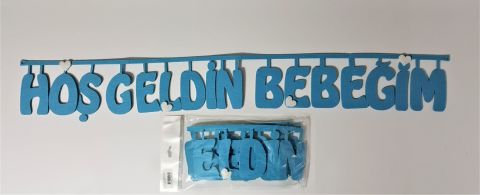 HOŞGELDİN BEBEĞİM MAVİ KEÇE UZAR YAZI